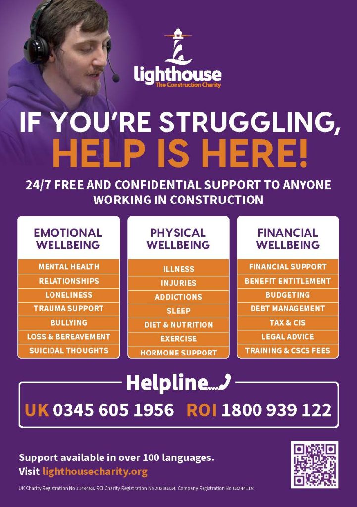 The Lighthouse Charity provides holistic support to our UK and Ireland construction community on all aspects of emotional, physical and financial wellbeing. And every day of the week, the charity’s call handlers respond to people reaching out for help through their 24/7 helpline and live web chat service.